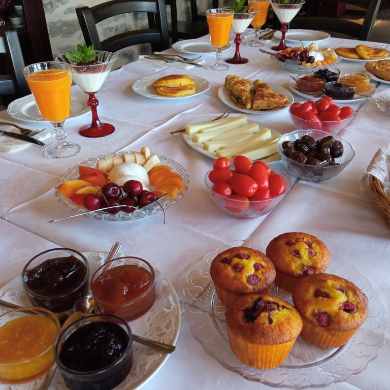 Η Αργυρώ σερβίρει αποκλειστικά τοπικά προϊόντα, μαγειρεμένα και μεταποιημένα από την ίδια και φροντίζει επίσης κάθε μέρα να υπάρχει κάτι διαφορετικό στο τραπέζι σας, Αυτό που θα σας μείνει αξέχαστο από την διαμονή σας, είναι σίγουρα το πλούσιο και παραδοσιακό πρωινό που σερβίρεται μέχρι και τις 14:00.