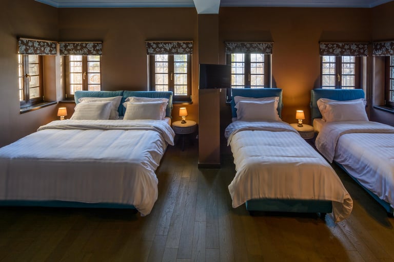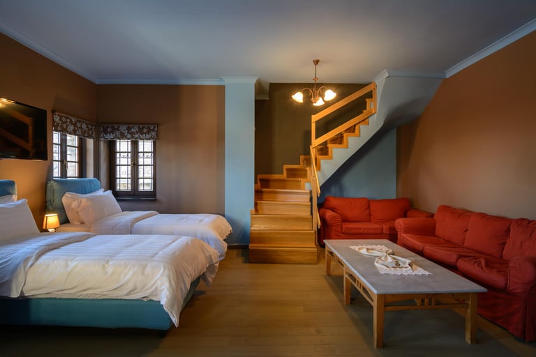 Μπορεί να φιλοξενήσει ένα ζευγάρι, ή μια τετραμελή οικογένεια προσφέροντας ανεξαρτησία, αυτονομία και πολυτέλεια.